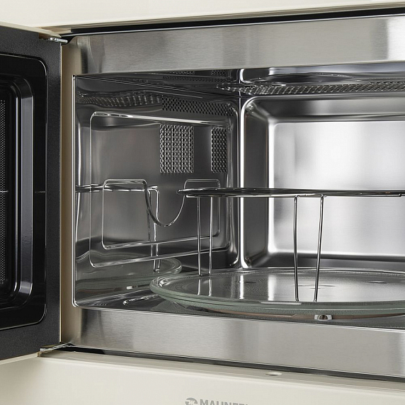 Микроволновая печь Maunfeld MBMO.25.7GBG бежевый — стильный дизайн и современные технологии. Внутреннее покрытие камеры полностью выполнено из нержавеющей стали AISI 304, в связи с чем, оно устойчиво к механическим воздействиям и абразивной чистке, отличается прочностью и долговечностью.