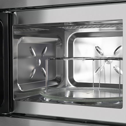 Микроволновая печь Maunfeld XBMO202S отличается современным и стильным внешним видом, выполненным в стиле модерн. Серебристый с черными и белыми элементами бытовой прибор будет отлично смотреться на кухне с любым интерьером — классическим, современным или ретро. Объем внутренней камеры составляет 20 литров, при этом конструкция предусматривает наличие 27 сантиметровой вращающейся тарелки. Благодаря ней готовые блюда, которые нужно подогреть, сырая пища, которую нужно приготовить или замороженные ингредиенты, которые нужно будет использовать в дальнейшем, прогреваются равномерно и быстро.