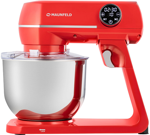 Миксер Maunfeld MF-423R выполненный из высококачественной нержавеющей стали и прочного пластика, с чашей объёмом 6.5 литров. Модель имеет 10 скоростей и антискользящее основание. Управление сенсорное с LED дисплеем и таймером с обратным отсчетом.