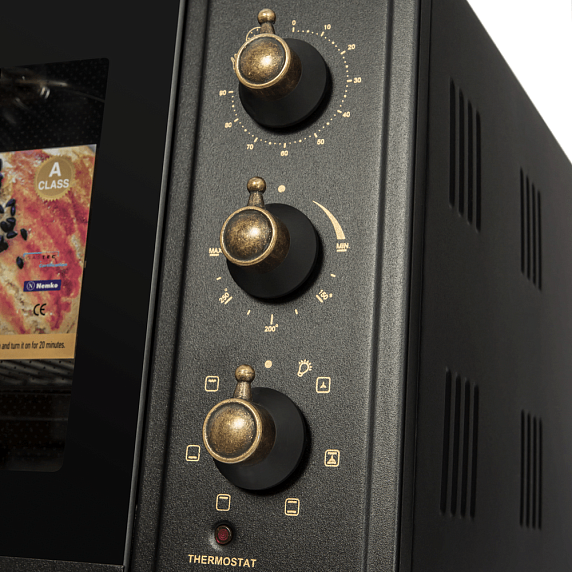 Мини-печь MAUNFELD CEMOA.456.RBG — это компактный кухонный прибор, предназначенный для приготовления различных блюд. Модель выполнена в черном цвете, имеет фурнитуру под бронзу. Такой дизайн сделает акцент в вашей кухне, или ином помещении, и придаст индивидуальность. Габариты товара 30×60×40 см, поэтому вам не стоит беспокоиться о том, что он займет много места в помещении. Управление прибором включает в себя поворотные переключатели, которые сможет освоить абсолютно каждый. Такой тип управления — это не только достижение результата легким касанием руки. Это надежность, т. к. переключатели укрывают электронику от внешних загрязнений.