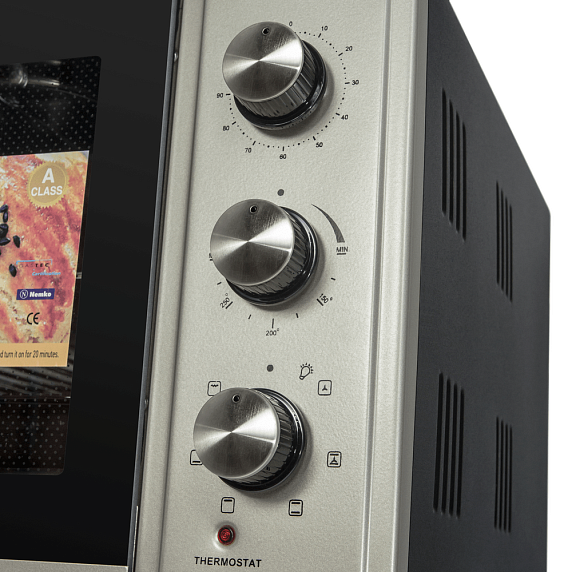 Для работы имеется семь функций. Среди них гриль и конвекция, комбинируя их вместе можно получить сочное запеченное блюдо, верхний и нижний нагревы для максимально равномерного прогревания продукта. Внутри бытовой прибор оснащен освещением, что очень удобно, когда нужно что-то достать или положить, быстро посыпать пиццу сыром, раскрыть рукав для запекания, чтобы появилась аппетитная корочка, или проверить готовность пирога. Автоотключение прибора обеспечит безопасную эксплуатацию.