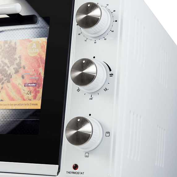 Мини-печь MAUNFELD CEMOB.363.W — это отдельностоящий компактный кухонный прибор для приготовления различных блюд. Модель выполнена в белом цвете с серебристой фурнитурой. Управление механическое, осуществляется при помощи поворотных переключателей. В компелкте поставляются прямоугольный и круглый противни и решетка для гриля.