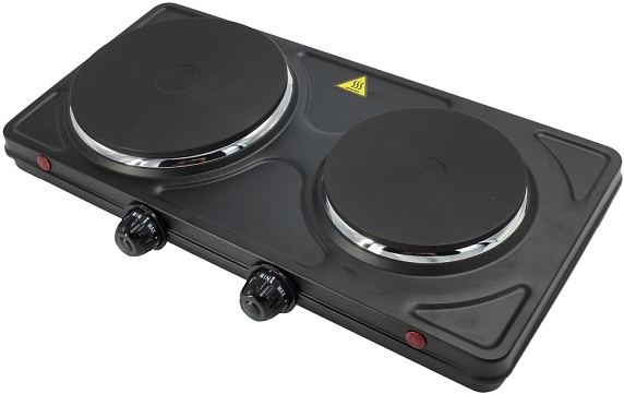 Тип поверхности: электрическая, Нагревательный элемент: чугунная конфорка, Количество нагревательных элементов: 2, Цвет: черный