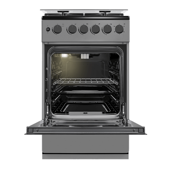 Газовая плита оснащена газовой духовкой, что позволяет готовить разнообразные блюда с использованием всех преимуществ газового нагрева — равномерное распределение тепла и сохранение сочности продуктов. Это особенно важно для тех, кто любит готовить выпечку или сложные блюда, требующие точного контроля температуры.