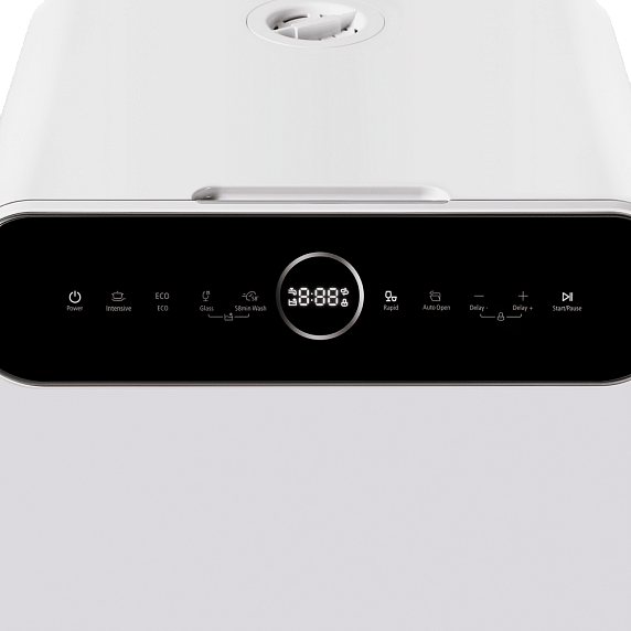 Управление осуществляется с помощью экрана, который максимально упрощают эксплуатацию. Сенсорная панель помогает незамедлительно установить нужный режим или включить полезные функции, и вы без труда сможете использовать данное оборудование. Устройство имеет конденсационный тип сушки. После мытья и полоскания посуда подвергается обработке горячей водой, и образует пар — он поднимается, после чего оседает на холодных стенках шкафа. Затем конденсат стекает в специальный резервуар на дне, откуда она удаляется насосом.