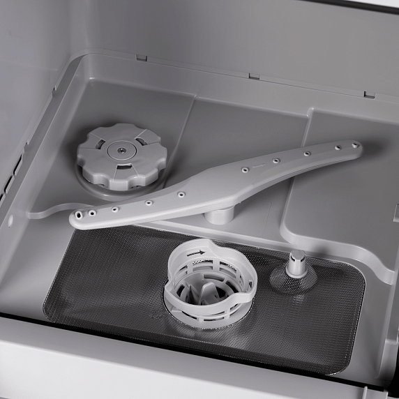Посудомоечная машина Maunfeld MWF06IM — это самая компактная модель — ее ширина 42 см, высота — 46.5 см, глубина — 43.5 см. Она идеально подойдет даже для маленькой кухни и не займет много места, когда это так важно. Техника выполнена в белом цвете, а также имеет по 6 программ и температурных режимов, среди которых стекло, быстрая, интенсивная, экономичную, 58 минут, а также отсрочка старта от 1 до 24 часов. Главная особенность в том, что есть функция самоочистки — это гарантирует качественное пользование посудомойки.
