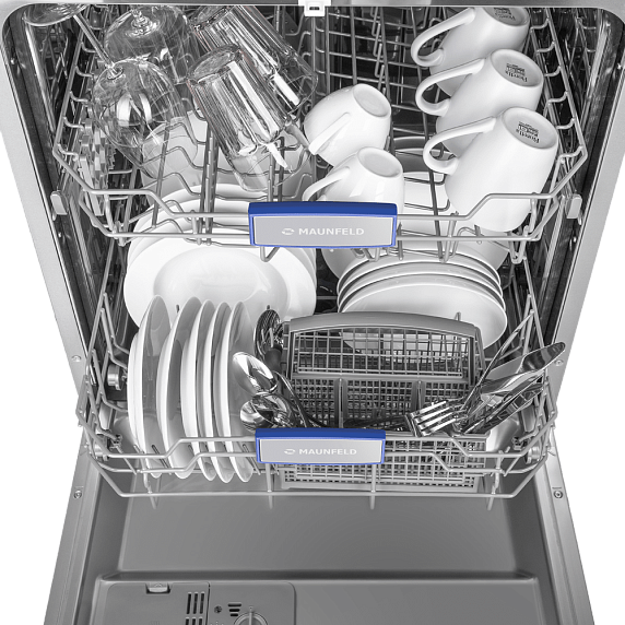 Maunfeld MWF12S обладает внушительной вместимостью, что позволяет одновременно вымыть до 12 комплектов посуды. Это делает её отличным выбором для семей среднего размера или для тех, кто часто принимает гостей. Благодаря конденсационной сушке, ваша посуда будет не только чистой, но и сухой, что избавляет от необходимости дополнительно протирать её.