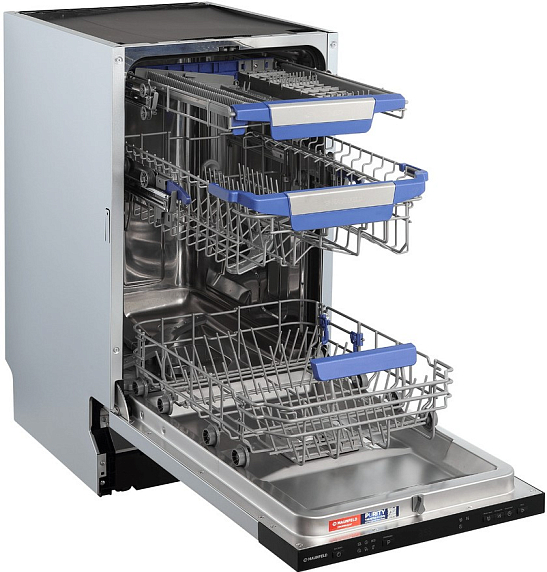 Встраиваемая посудомоечная машина Maunfeld MLP45636 Light Beam представляет собой современное и функциональное устройство, созданное для эффективной и бережной очистки посуды в условиях ограниченного пространства. Благодаря узкому формату и полновстраиваемому типу установки, она идеально впишется в кухонный гарнитур, экономя место и сохраняя эстетичный внешний вид интерьера. Высота 81.5 см, ширина 44.8 см и глубина 55 см позволяют разместить технику в нише с габаритами 82 х 45 х 55.5 см, что соответствует стандартным параметрам для компактных моделей.