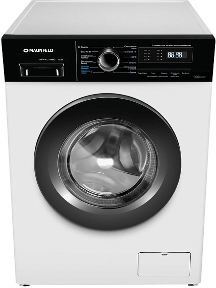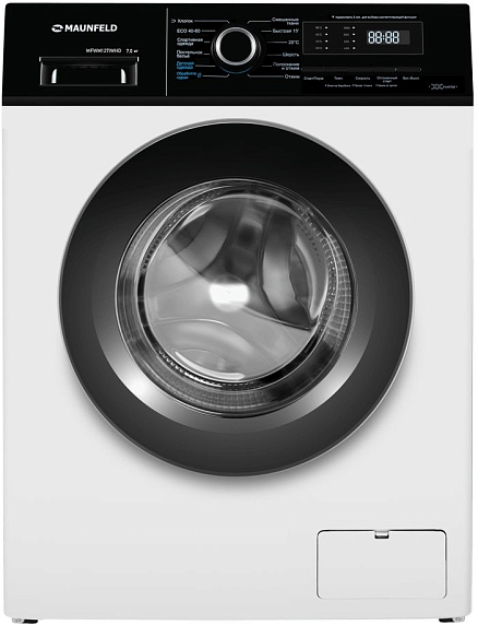Строгий и современный дизайн стиральной машины Maunfeld MFWM127IWHD в белом цвете идеально впишется в любой интерьер. Устройство имеет компактные размеры, которые позволяют установить его даже в небольшой ванной комнате. При этом, несмотря на свои скромные размеры, машина способна загружать до 7 кг белья, что делает ее идеальным вариантом для средней семьи. Управление стиральной машиной осуществляется при помощи сенсорного дисплея и поворотного переключателя, что делает процесс настройки программ стирки максимально удобным и интуитивно понятным. На дисплее отображаются все необходимые параметры стирки, а также имеется возможность выбора функций, таких как отсрочка старта, выбор скорости отжима, предварительная стирка и выбор температуры.