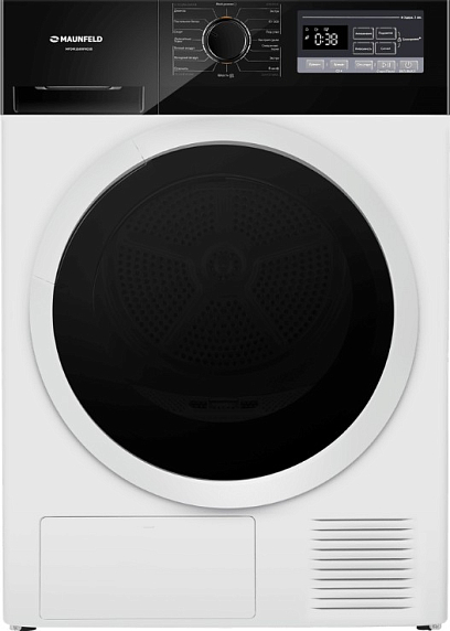 Сушильная машина MAUNFELD MFDM168WH03B представляет собой современное и функциональное решение для сушки белья. Выполненная в элегантном белом цвете, она гармонично впишется в любой интерьер. Устройство отличается компактными размерами с высотой 84.5 см, шириной 59.5 см и глубиной 61 см, что позволяет легко разместить его в любом удобном месте. Благодаря типу установки как отдельностоящая, данная модель предлагает гибкость в размещении. Управление осуществляется с помощью электронного интерфейса, включающего поворотный переключатель и сенсорные элементы, что обеспечивает простоту и удобство в использовании. Наличие дисплея позволяет легко контролировать выбранные параметры и режимы сушки, а функция отсрочки старта от 1 до 24 часов добавляет удобства в планировании времени работы устройства.