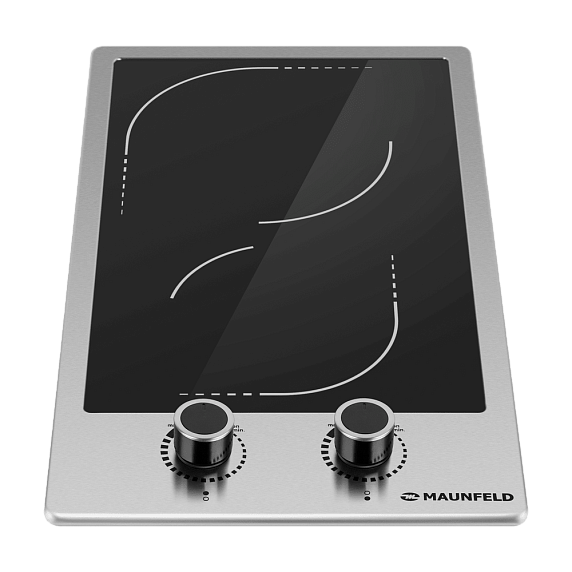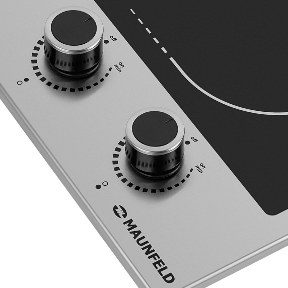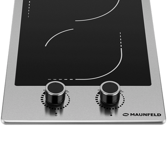 Электрическая варочная панель Maunfeld EEHE.32VCSB — компактная модель, выполненная в необычном современном дизайне. Поверхность плиты изготовлена из черной стеклокерамики, прочного теплопроводного материала, который прост в уходе и энергоэффективен. Зоны нагрева схематично очерчены двумя тонкими белыми линиями. Устройство обрамлено металлической рамкой цвета нержавеющей стали. Благодаря этому уменьшаются теплопотери. Управление полностью механическое и осуществляется с помощью двух цельнометаллических поворотных регуляторов черного цвета. За счет этого создается контраст, который придает изюминку внешнему виду модели.