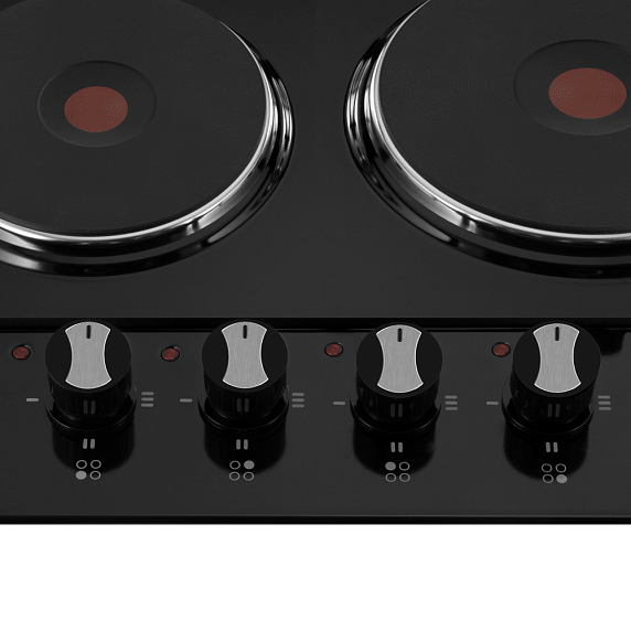 Тип поверхности: электрическая, Количество конфорок: 4, Цвет: черный, Элементы управления: поворотные
