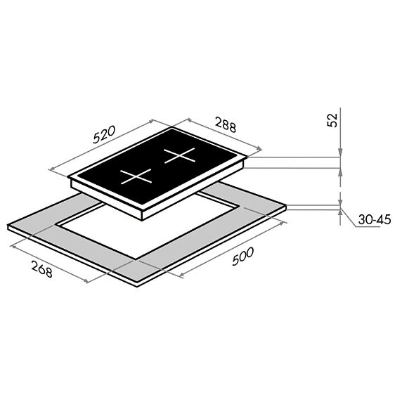 Компактный формат «Домино» с двумя конфорками идеально подходит как для небольших кухонь, так и в качестве дополнения к основной варочной панели.