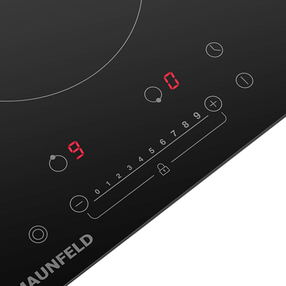 Стеклокерамическая варочная панель Маунфелд EVCE.292F. D-BK оснащена девятью уровнями мощности: для кипячения воды, для быстрой прожарки, и медленного тушения. Индикация ступеней нагрева подскажет, на какой мощности нагрева сейчас готовится блюдо. Автоматическое отключение сработает, если в процессе работы конфорка нагревается до критических температур. Индикатор остаточного тепла будет долго светиться после того, как вы закончили готовку, поэтому Вы точно не обожжетесь.