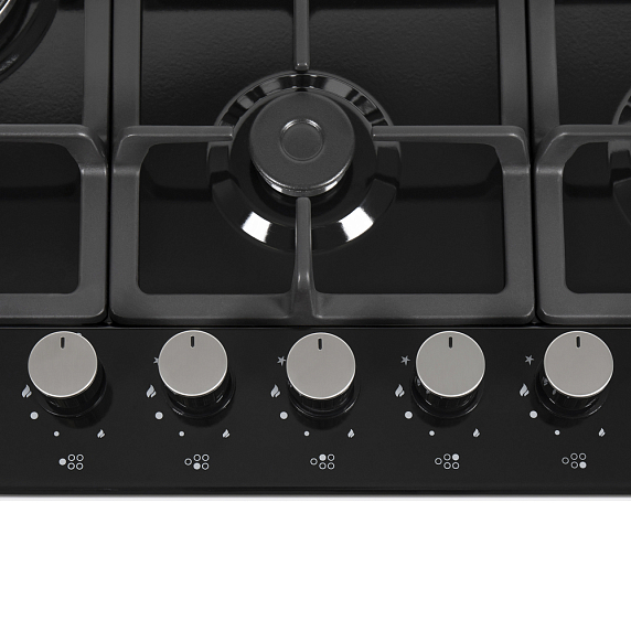 Тип поверхности: газовая, Количество конфорок: 5, Цвет: черный, Элементы управления: поворотные
