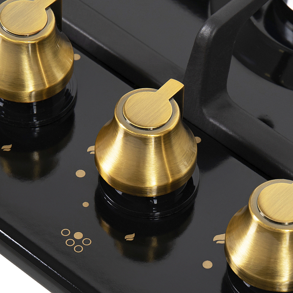 Maunfeld EGHE.75.33CB.R/G — это пятиконфорочная газовая варочная панель чёрного цвета шириной 70 см. Управление механическое, осуществляется при помощи цельнометаллических поворотных ручек бронзового цвета. Решётки чугунные. Функция газ-контроля обеспечивает безопасную эксплуатацию.