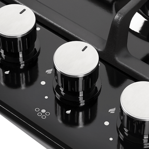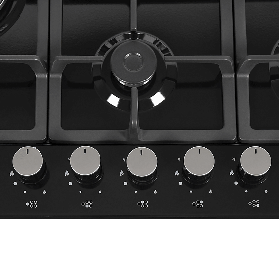 Тип поверхности: газовая, Количество конфорок: 5, Цвет: черный, Элементы управления: поворотные