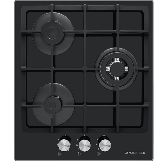 Maunfeld EGHG.43.33CB/G — это газовая варочная панель на три конфорки шириной 45 см. Материал поверхности — закалённое стекло, решётки чугунные, с упругой прокладкой, защищающей от царапин. Элементы управления — металлические поворотные ручки. Безопасность обеспечивает функция «газ-контроль». Предусмотрено подключение к магистральному газопроводу либо баллону.