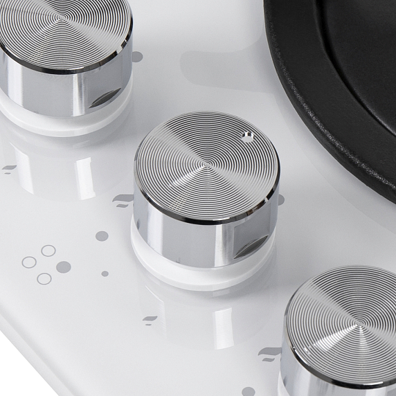 Тип поверхности: газовая, Количество конфорок: 4, Цвет: белый, Элементы управления: поворотные
