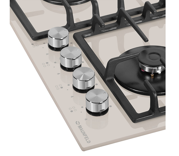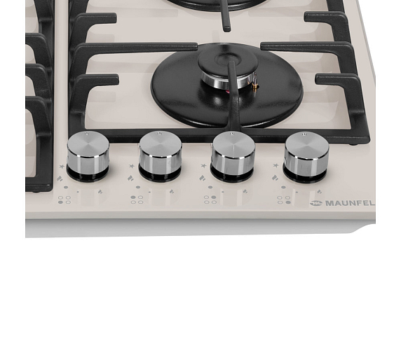 Варочная панель Maunfeld EGHG.64.33CBG/G представлена в бежевом цвете. Высокопрочные чугунные решетки с особой конструкцией обеспечивают устойчивость посуды. WOK-конфорка позволяет готовить блюда на специально предназначенной посуде. В комплекте предоставляются французские жиклеры для подключения к газовым баллонам.