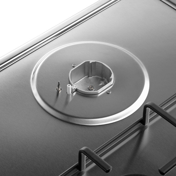 Эмаль решеток не только придает устройству эстетичный вид, но и обеспечивает легкость в уходе. Высокопрочные термостойкие пластиковые ручки управления делают использование устройства безопасным и комфортным. Механическое управление с поворотными элементами позволяет точно регулировать уровень пламени, а автоматический электроподжиг облегчает процесс зажигания. Итальянские горелки SABAF гарантируют равномерное распределение тепла и высокую эффективность приготовления пищи.