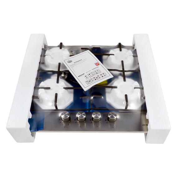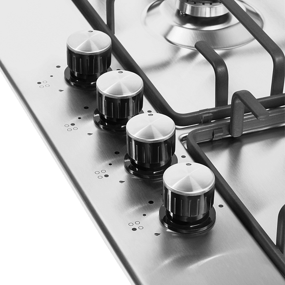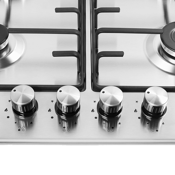 Тип поверхности: газовая, Количество конфорок: 4, Цвет: нержавеющая сталь, Элементы управления: поворотные