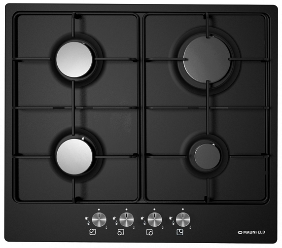 Maunfeld MGHE.64.62B — это газовая варочная панель с четырьмя конфорками. Поверхность и решётки выполнены из эмалированного металла чёрного цвета. Управляется с помощью хромированных поворотных ручек из пластика. Есть функции газ-контроля и электроподжига. Может работать на магистральном и баллонном газе.