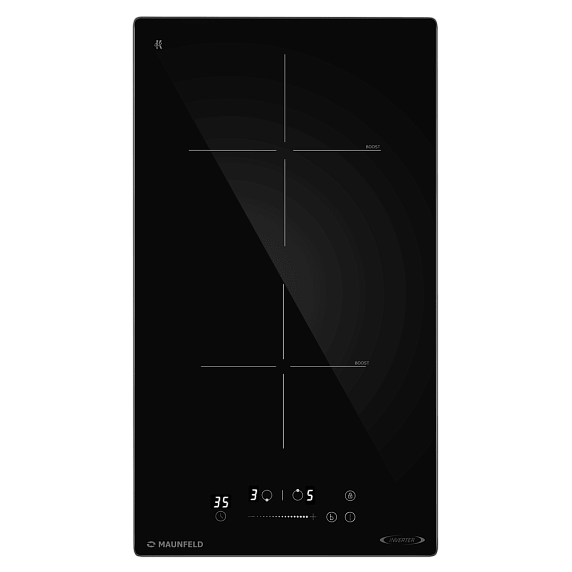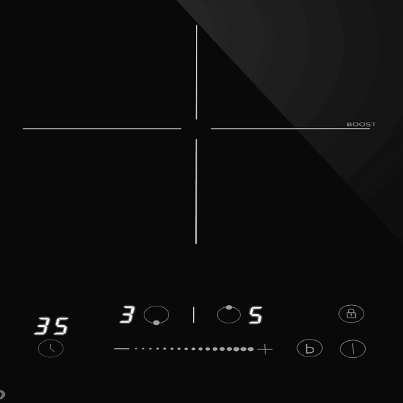 • Две индукционные зоны с Booster обеспечивают быстрый нагрев и удобный контроль мощности.