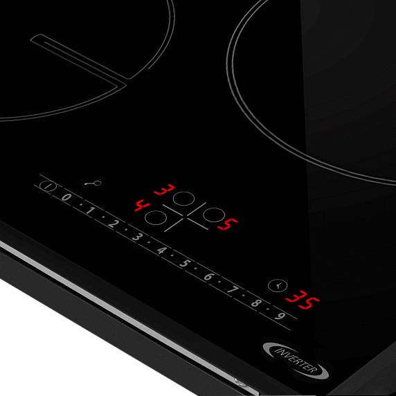 Каждая зона регулируется в девяти ступенях мощности — от едва ощутимого тепла для растапливания шоколада до интенсивного кипения. Цифровая индикация отображает текущий уровень, а подсветка активной зоны загорается только при наличии подходящей посуды. При ошибке — отсутствии посуды, перегреве или блокировке панели — на дисплее появляется код, указывающий на причину. Функция бустера временно повышает мощность для быстрого закипания воды или интенсивного обжаривания. Таймер для каждой конфорки отсчитывает заданное время и подаёт звуковой сигнал по завершении — удобно для блюд, где важна точность по времени.