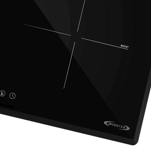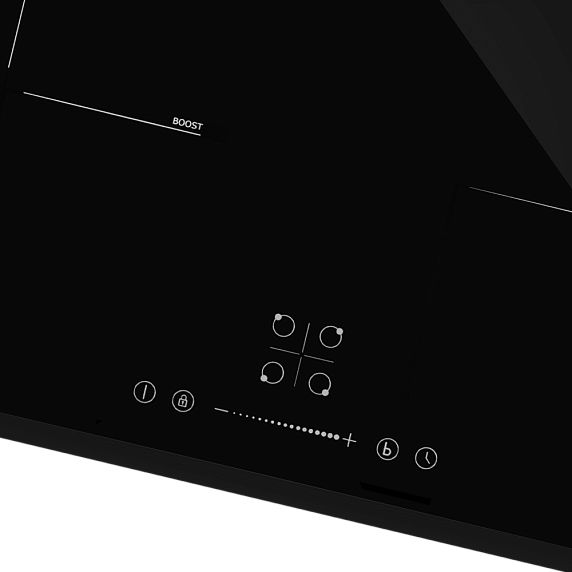 - Booster на всех зонах, 9 ступеней мощности и сенсорный слайдер обеспечивают точный контроль нагрева.