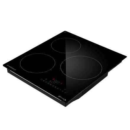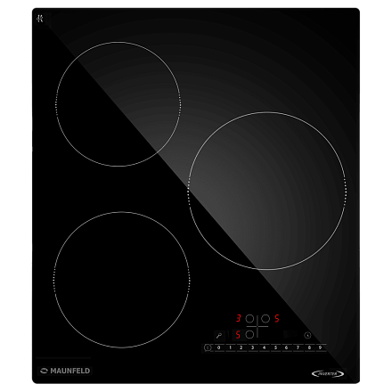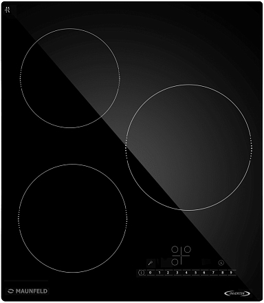 - Три индукционные зоны с Booster для ускоренного нагрева и гибкого распределения мощности при готовке.