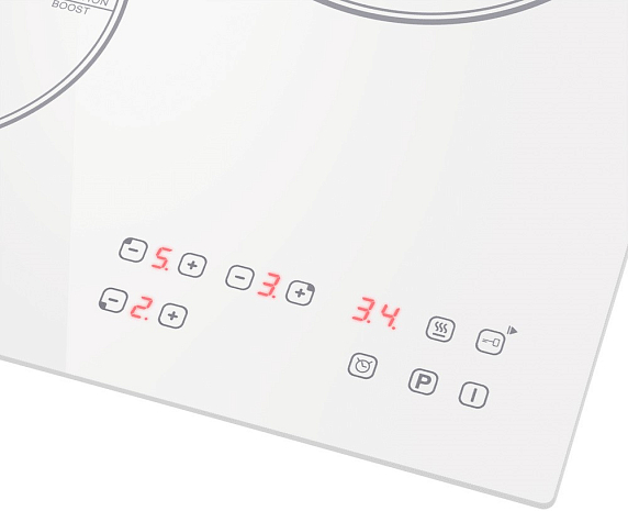 Благодаря таймеру можно запрограммировать время работы (от 1 до 99 минут) для каждой зоны нагрева. По его истечении конфорка выключится.