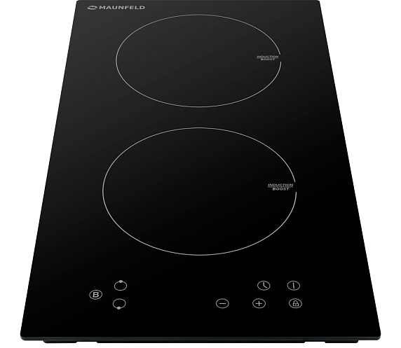 Индукционная плита от Maunfeld комплектуется двумя нагревательными элементами с различающейся мощностью. Передняя конфорка характеризуется производительностью 2000/2300 Вт, что способствует быстрой и продуктивной готовке. Тыловая зона нагрева мощностью 1500/1800 Вт наилучшим образом подходит для более неторопливого и равномерного прогрева продуктов.