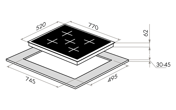 Материал поверхности – стеклокерамика Материал поверхности – стеклокерамика