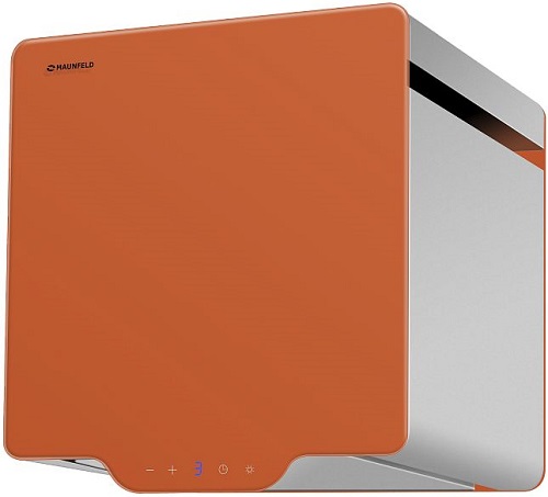 Кухонная вытяжка MAUNFELD Box Quadro 38 в стиле модерн представлена в сочетании оранжевого стекла и нержавеющей стали. За счет своего неординарного дизайна вытяжка Box Quadro станет ярким элементом вашей кухни. Оснащена сенсорным управлением 4-мя скоростями разной степени интенсивности и цифровым дисплеем. Имеет таймер и функцию контроля режима ожидания с помощью смартфона, что делает эксплуатацию невероятно удобной.