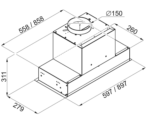 Монтаж «в шкаф» позволяет аккуратно встроить вытяжку внутрь навесного кухонного шкафа — техника становится практически незаметной, сохраняя чистый и лаконичный дизайн интерьера. Идеально для компактных кухонь: экономит пространство, не нарушает эстетику и при этом обеспечивает высокую производительность — воздух остаётся свежим, а кухня — уютной и организованной.