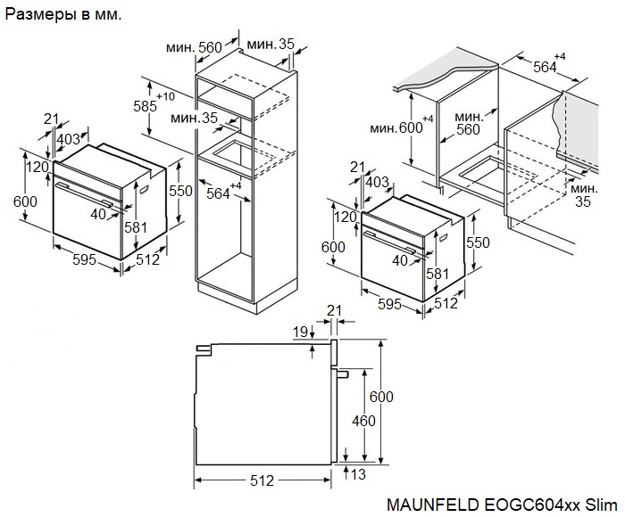 Схема встраивания для духового шкафа Maunfeld EOGC604RBG.MT Slim