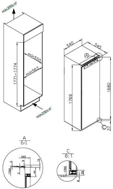 Схема встраивания для холодильника Maunfeld MBL177SWGR