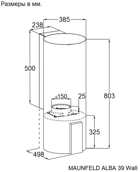 Схема встраивания для кухонной вытяжки Maunfeld ALBA 39 Wall Gold