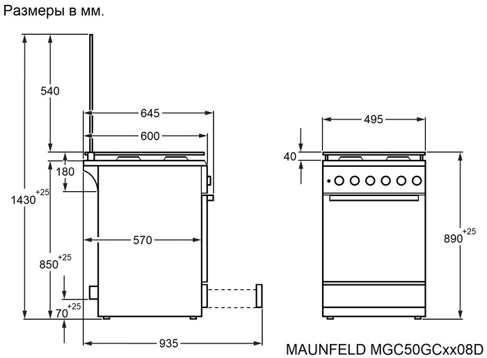 Схема встраивания для плиты Maunfeld MGC50GCGR08D