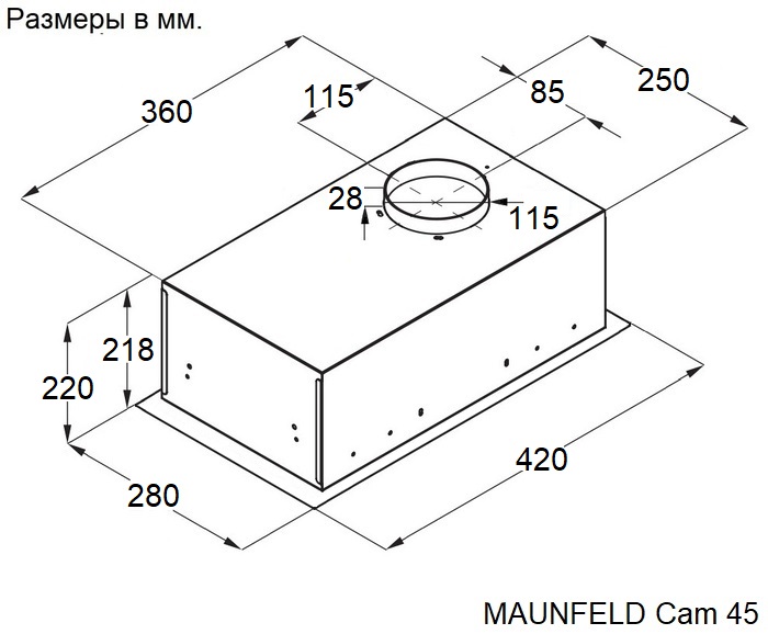 Схема встраивания для кухонной вытяжки Maunfeld Cam 45 Inox
