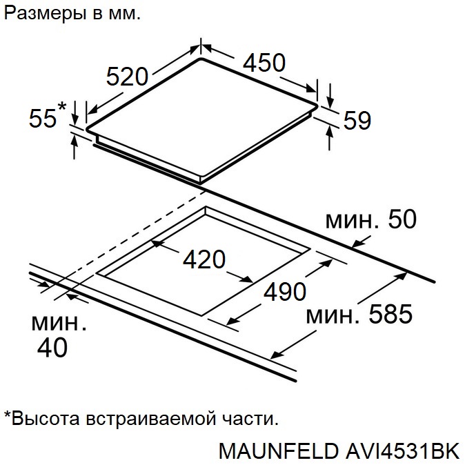 Схема встраивания для варочной панели Maunfeld AVI4532BK
