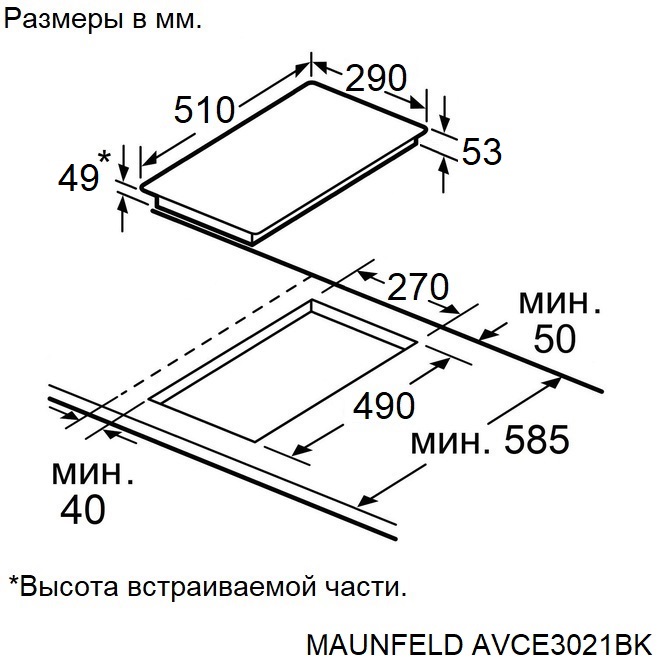 Схема встраивания для варочной панели Maunfeld AVCE3021BK
