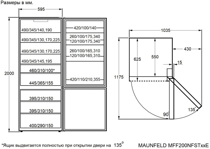 Схема встраивания для холодильника Maunfeld MFF200NFSTWE