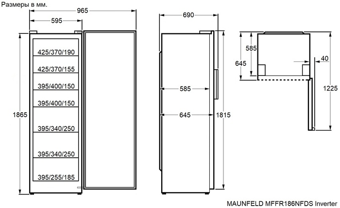 Схема встраивания для холодильника Maunfeld MFFR186NFDS Inverter