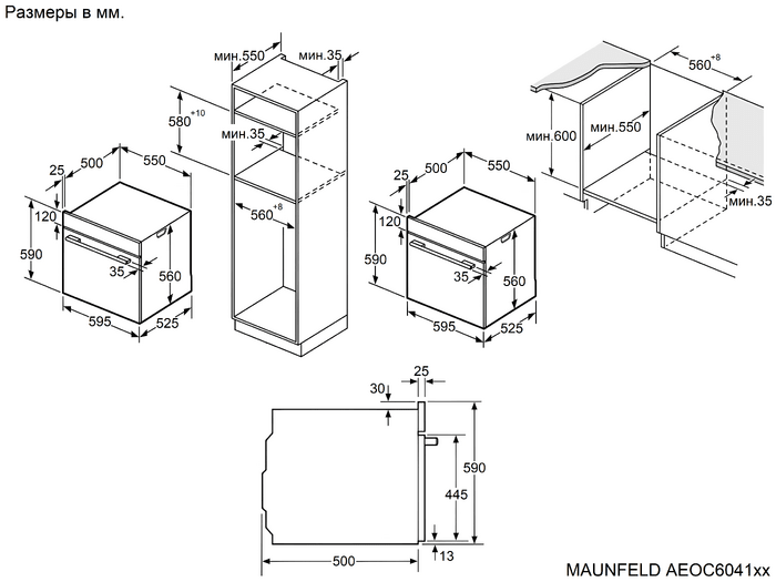 Схема встраивания для духового шкафа Maunfeld AEOC6041S