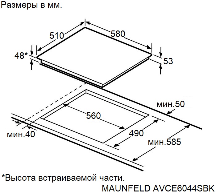 Схема встраивания для варочной панели Maunfeld AVCE6044SBK