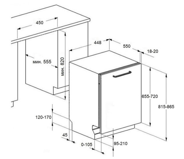 Схема встраивания для посудомоечной машины Maunfeld MLP45535 Light Beam
