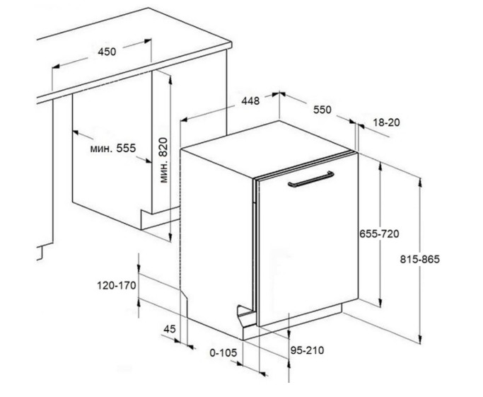Схема встраивания для посудомоечной машины Maunfeld MLP45631 Light Beam